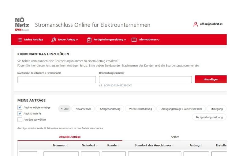 tecfirst kümmert sich um den erforderlichen Antrag bei ihrem Netzbetreiber.